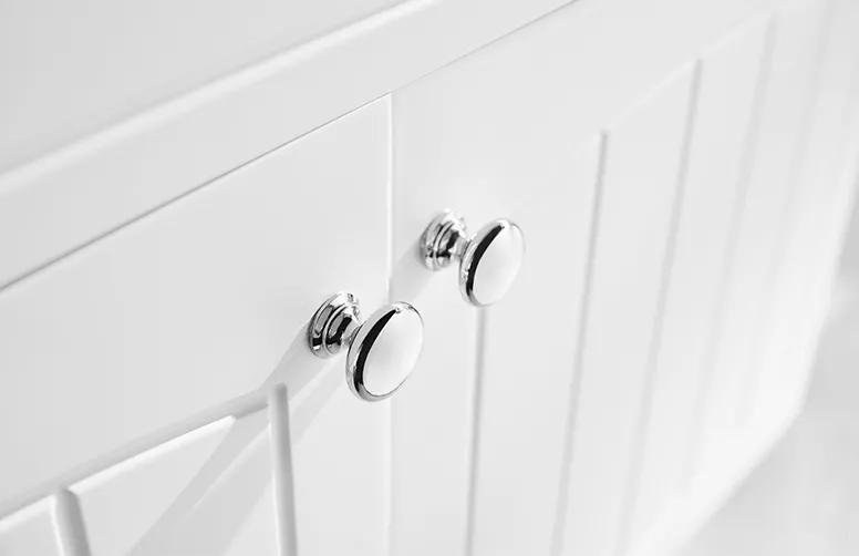 这款美式田园风浴室柜整体设计选用了简约的白色调,非常的清新又百搭,适用于各类装修风格的家装设计。品质木材让柜体本身更具质感,无框镜的设计让柜体更显简洁感,一体色的陶瓷手盆展现一体式效果。