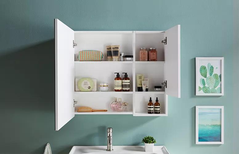 无框镜高清立体的成像镜面,镜面的光线柔和自然,清晰的成像效果十分棒!右侧收纳柜既起到收纳作用,又修饰了镜身的整体感,显得镜身没有那么单调。并且右侧收纳柜做了一个小开放式的收纳,便于放置洗漱用品。