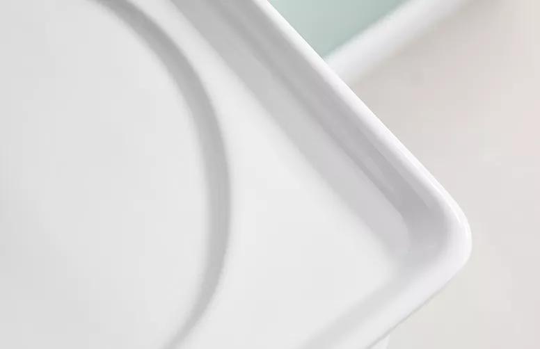 陶瓷台盆是1260°C高温烧制而成,表面经过多层施釉处理,顺滑易清洁抗污性能强。凹凸简约的嵌入式盆体设计,人性化中不乏艺术感。既可达到较好的防溅防溢效果,也便于日常洗漱使用。