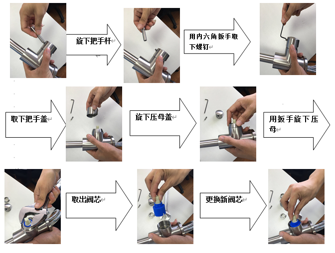 3.用活动扳手将压母旋下,取出阀芯进行更换。
