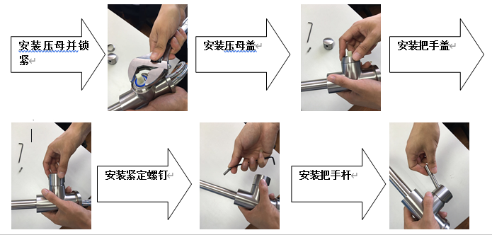 取下把手,取下压母盖,用扳手将压母顺时针锁紧即可。