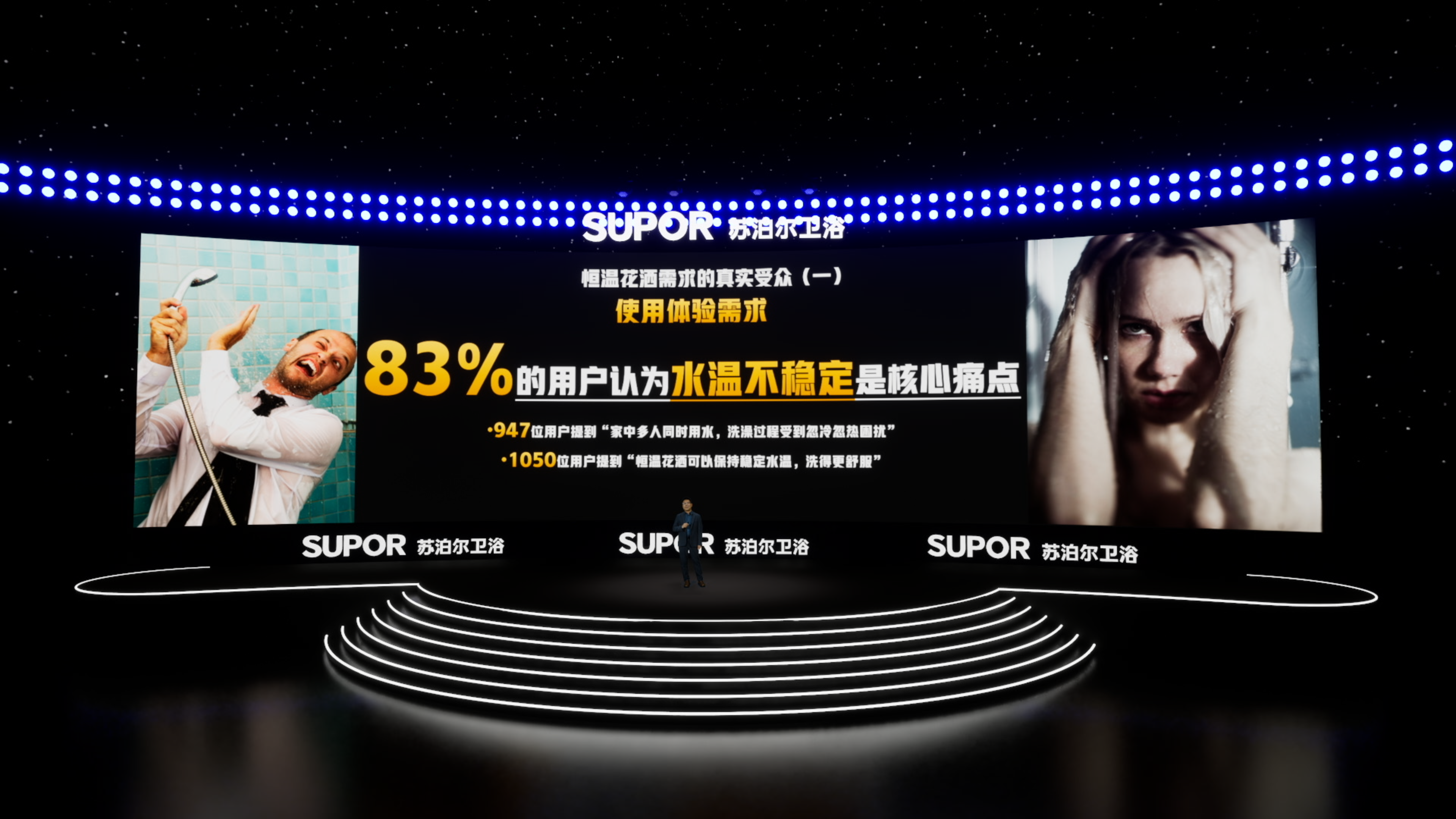 但市场的快速增长,并未同步解决行业根深蒂固的短板。数据显示,83%的用户认为水温不稳定是核心痛点,传统恒温花洒对热水器类型、水压环境、安装条件极度挑剔,低水压小区、老旧住宅难以正常使用;硬水地区阀芯易结垢堵塞、控温失灵;存量房换新往往需要改造管路,成本高、门槛高。一边是持续爆发的市场刚需,一边是难以适配的产品供给,整个恒温花洒赛道,迫切需要拥有技术沉淀、品质标准、服务能力与品牌信任的真正破局者。苏泊尔的到来,恰好踩中了这个时代节点。